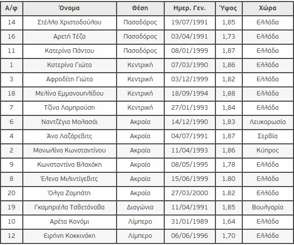 Στα αξιοσημείωτα είναι η παρουσία της Δίρβα στο ρόστερ της ομάδας με την 38χρονη κεντρική να επιστρέφει στον τόπο καταγωγής της. Από εκεί και πέρα υπάρχουν πολλά κορίτσια με μεγάλο ταλέντο όπως η 17χρονη Νάσια Φακοπουλίδου.