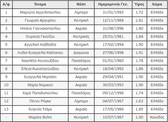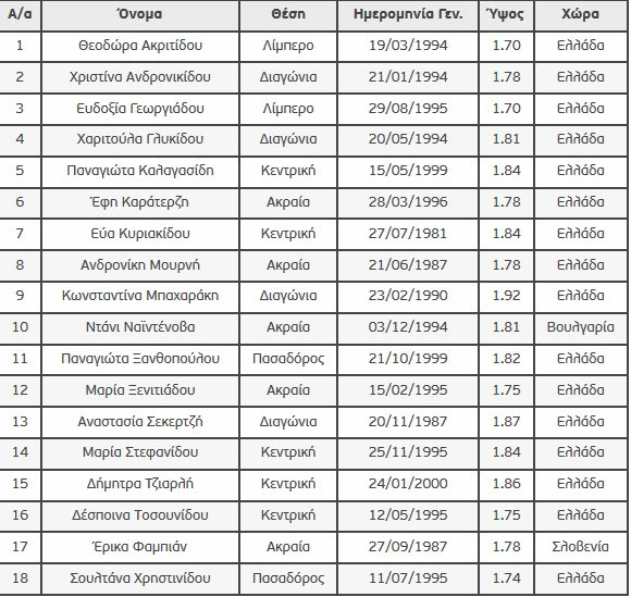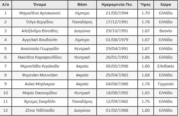 Έφυγαν: Σοφία Κοσμά (Α), Ιβάνα Μπραμπόροβα (Α), Γιοβάνα Βέσοβιτς (Α), Ιβάνα Νέσοβιτς (Δ), Αλίκη Κωνσταντινίδου (Κ)