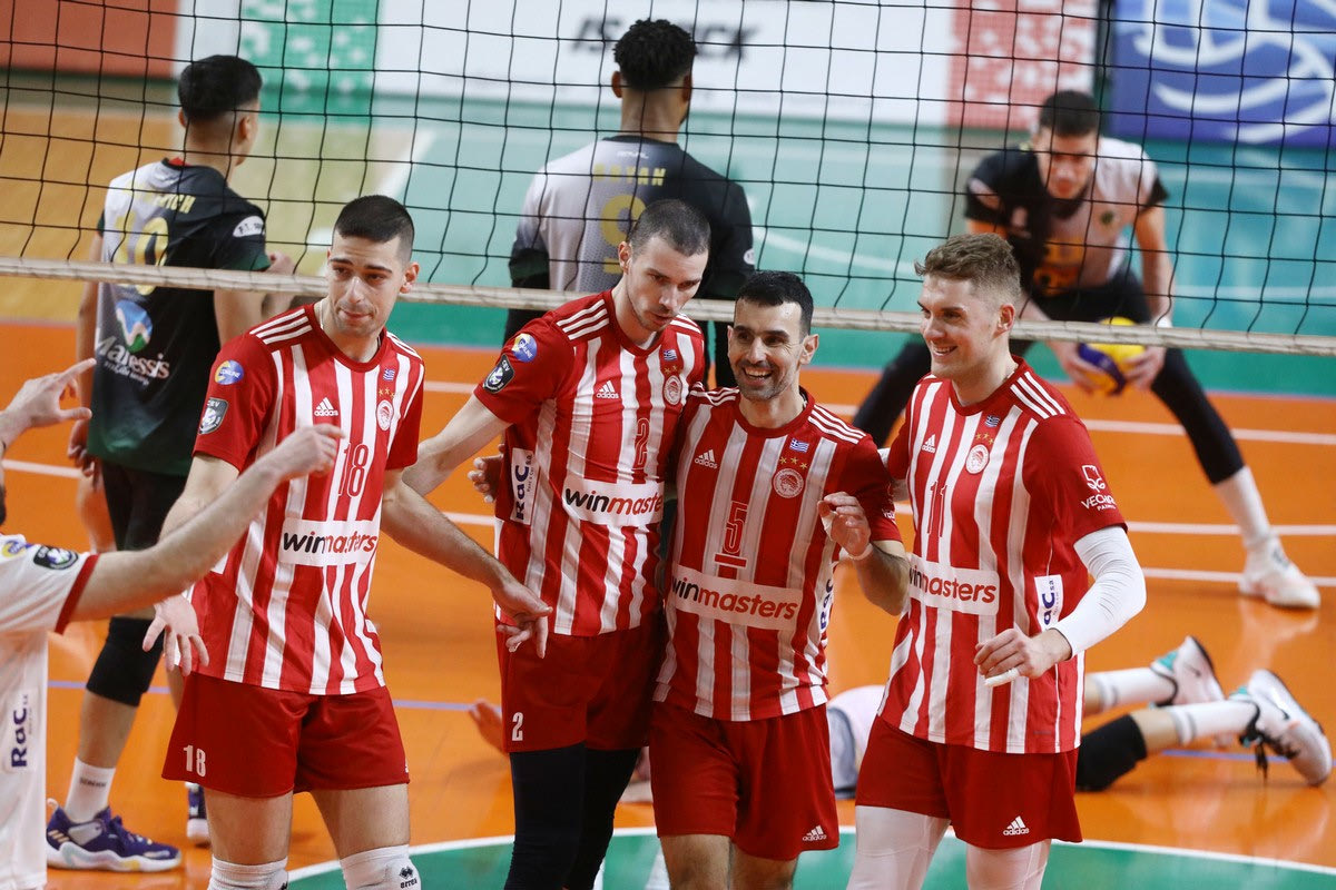 ΟΛΥΜΠΙΑΚΟΣ (Αλμπέρτο Τζουλιάνι): Στιβαχτής, Μιγιαήλοβιτς 11 (10/21 επ., 1 άσσος – 80% υπ., 67% άριστες), Ανδρεάδης 5 (4/5 επ., 1 μπλοκ), Τέπαν 13 (12/22 επ., 1 άσσος), Ζουπάνη 9 (5/8 επ., 2 άσσοι, 2 μπλοκ), Πέριτς 17 (13/25 επ., 2 άσσοι, 2 μπλοκ – 79% υπ., 43% άριστες) / Ζήσης (λ. – 89% υπ., 56% άριστες), Εφραιμίδης 1 (1/1 επ.), Δαλακούρας 1 (1/2 επ. – 50% υπ., 25% άριστες), Τζιάβρας (λ.), Χαραλαμπίδης