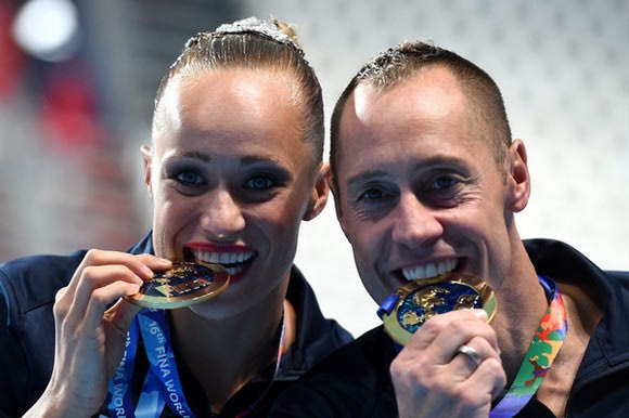 Αυτή δεν ήταν η μοναδική της… παραχώρηση, μικτά αγωνίσματα προστέθηκαν στο κατ’εξοχήν γυναικείο άθλημα του υγρού στίβου: Τη συγχρονισμένη κολύμβηση! Ο Αμερικανός Μπιλ Μέι και η συναθλήτρια του, Κριστίνα Τζόουνς αναδείχθηκαν παγκόσμιοι πρωταθλητές στο μικτό τεχνικό ντουέτο με τον 36χρονο να διεκδικεί και ένα δεύτερο χρυσό μετάλλιο στο μικτό ελεύθερο ντουέτο την Πέμπτη (30/7).
