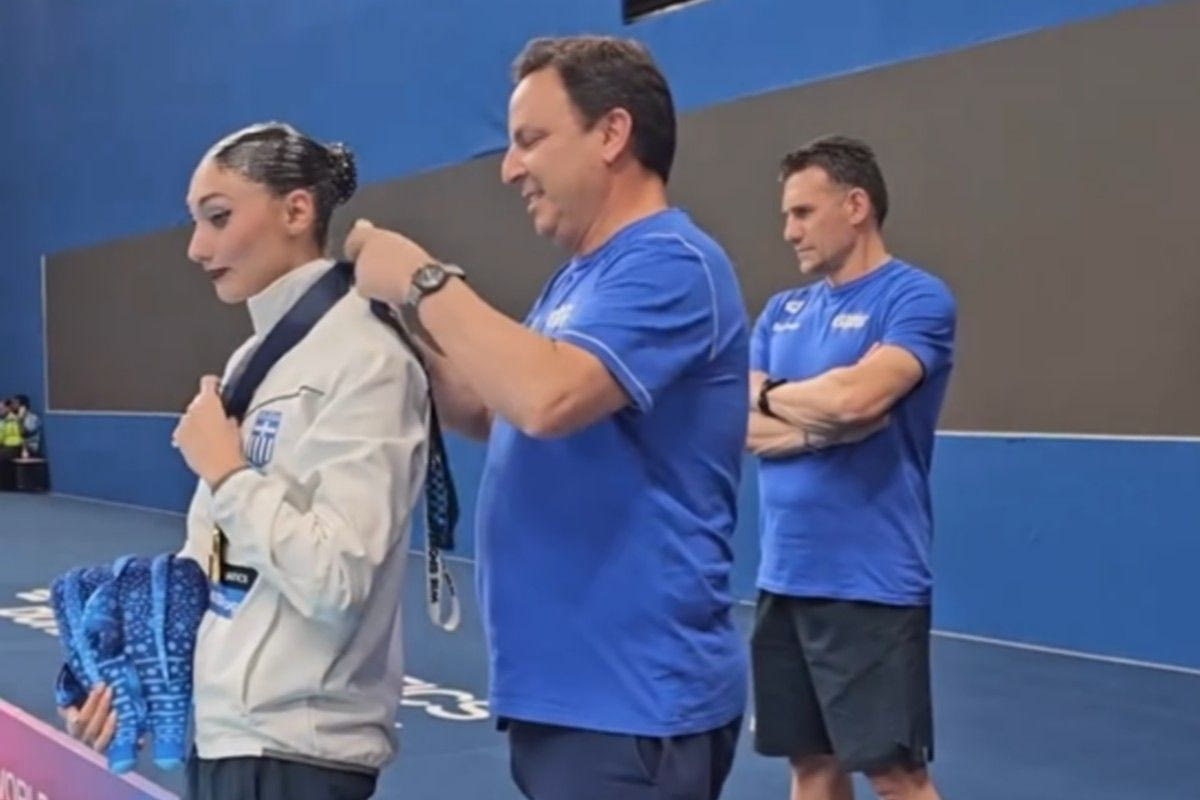 Η Ευαγγελία Πλατανιώτη βρέθηκε στην πισίνα που προπονούνταν η εθνική πόλο ανδρών, με το σύνολο του Θοδωρή Βλάχου να αποθεώνει την "χρυσή" αθλήτρια.