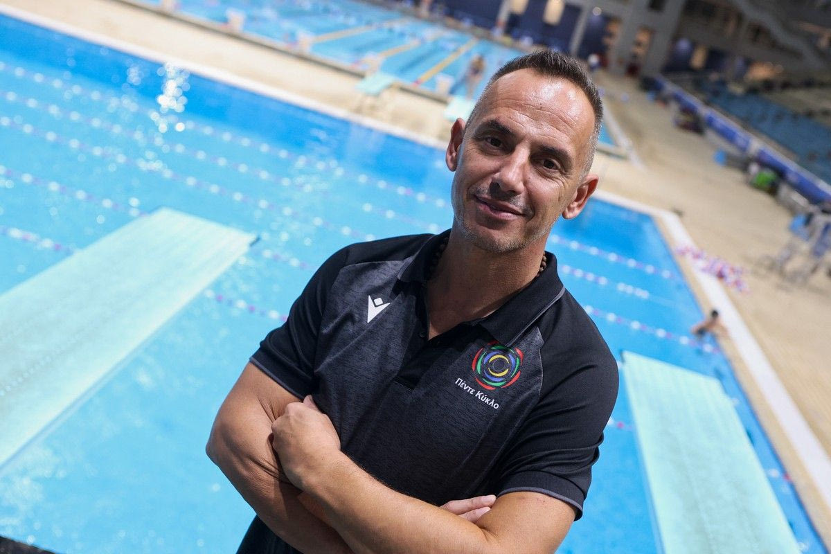 “Καταρχάς, εμείς είμαστε λίγο… ξώφαλτσοι στον υγρό στίβο. Είμαστε πιο κοντά στην ενόργανη παρά στα αθλήματα της πισίνας, αλλά μας συνδέει το νερό, γι’ αυτό και είμαστε στη KOE, την κολυμβητική ομοσπονδία.