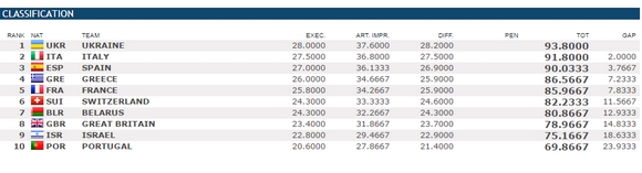 Την πρωτιά στον προκριματικό κατέκτησε η Ουκρανία, τη 2η θέση η Ιταλία και την 3η η Ισπανία (δεν μετείχε η Ρωσία).